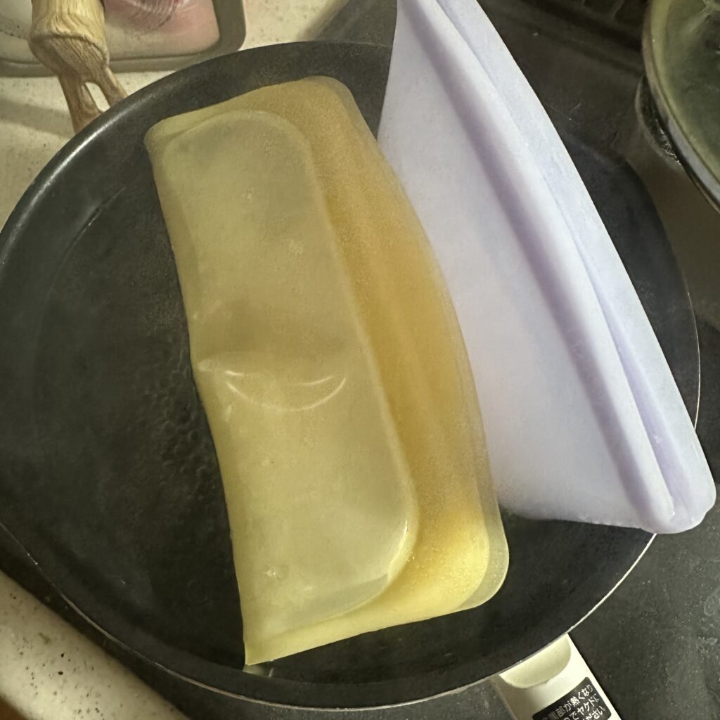 空気が抜けなかったこと、EZサンドイッチの場合、内側が結構油で洗いづらい点があり、肉調理には使わない、となりました。