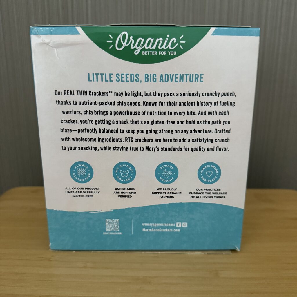 ブログには書いていないのですが、過去に購入歴が何度かあるMary's Gone Crackers.