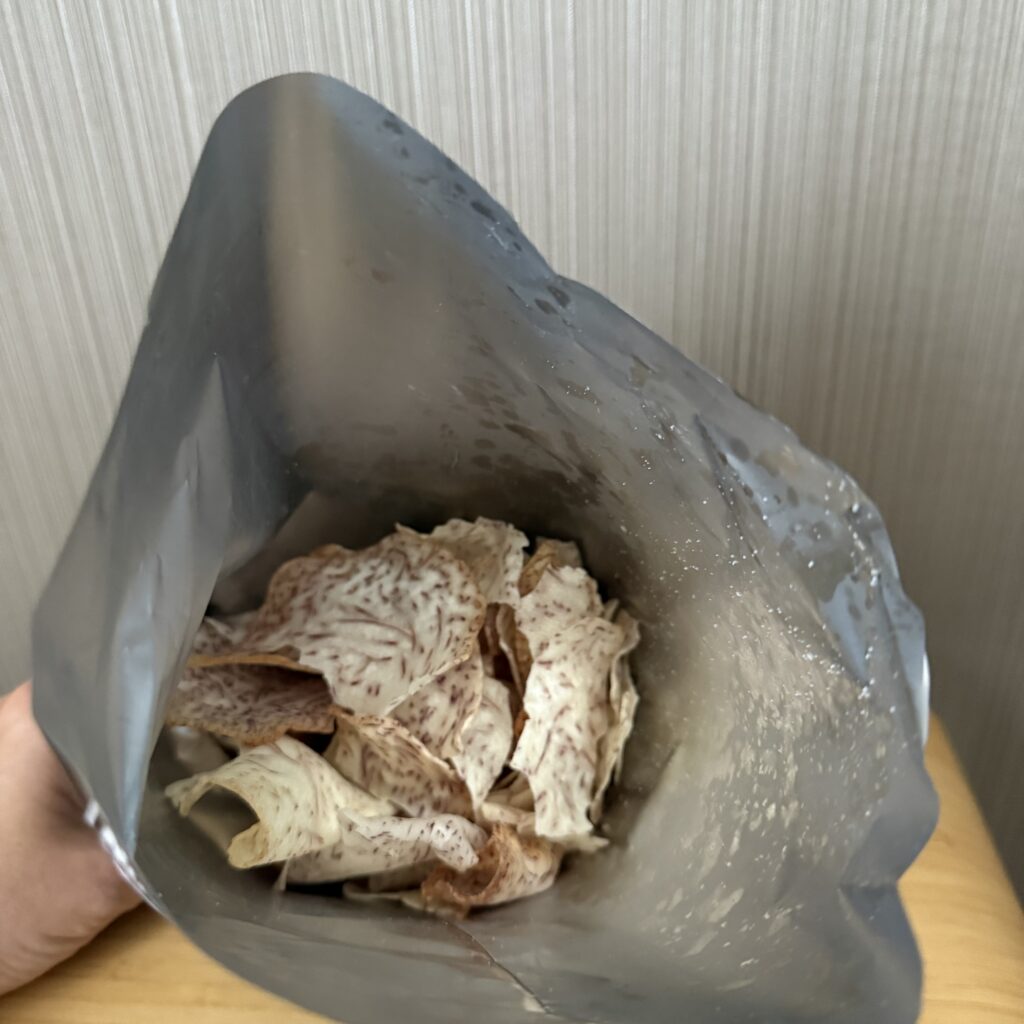 袋を開けたときに、ふわっとサツマイモチップスというか、芋けんぴというか、さつまいも系+油のにおいがしました。